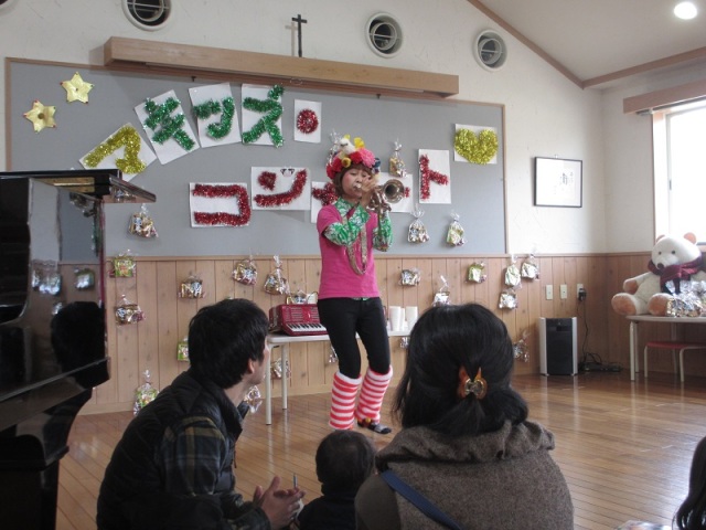 ぽこあぽこ主催のママキッズコンサートが開催されました。10年目、10回目の今年は、34組の親子さんが参加して下さいました。 音スキンシップⓇアーチスト トランペット奏者のオーノユキヨさんによる、トランペットやアコーディオンの演奏、子どもたちとの歌や音を楽しむ遊びなど盛りだくさんの、あっという間の楽しい1時間でした。 12月のぽこあぽこは、 13日(水)10:30~「折り紙のクリスマスリース作り」をします。 ぜひ、お越しください。