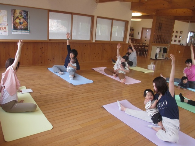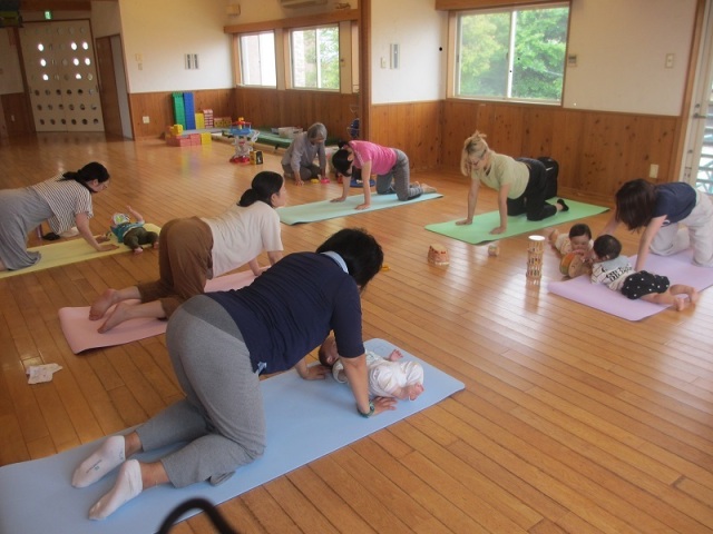 赤ちゃんが少し大きくなって、自分で遊び出したら、それもOK。お母さんの側で赤ちゃんが遊びながら、お母さんはしっかりとヨガを楽しめます。