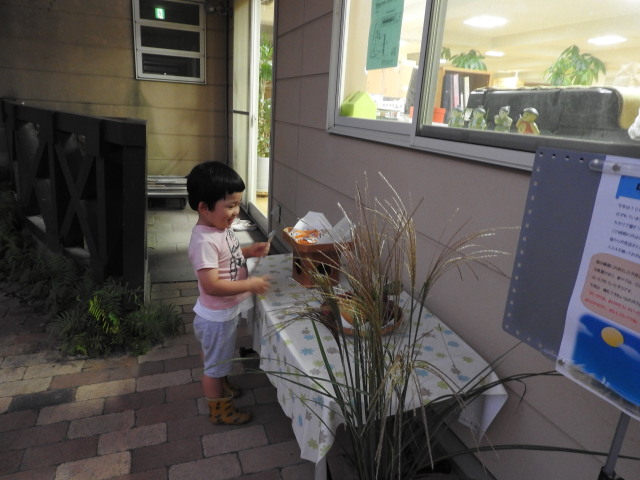 10月6日(月)中秋の名月昔は縁側にお供えした月見団子を、子ども達がそっととって食べる風習があったそうです。保育園でも毎年、お月様にお供え物をしています。「おつきさま、ありがとう」「お月様、一つ頂きます」と言って一つ持って帰っています。小さなお団子をもらって嬉しそうな子どもたちでした!今年も綺麗なお月様が見れました。